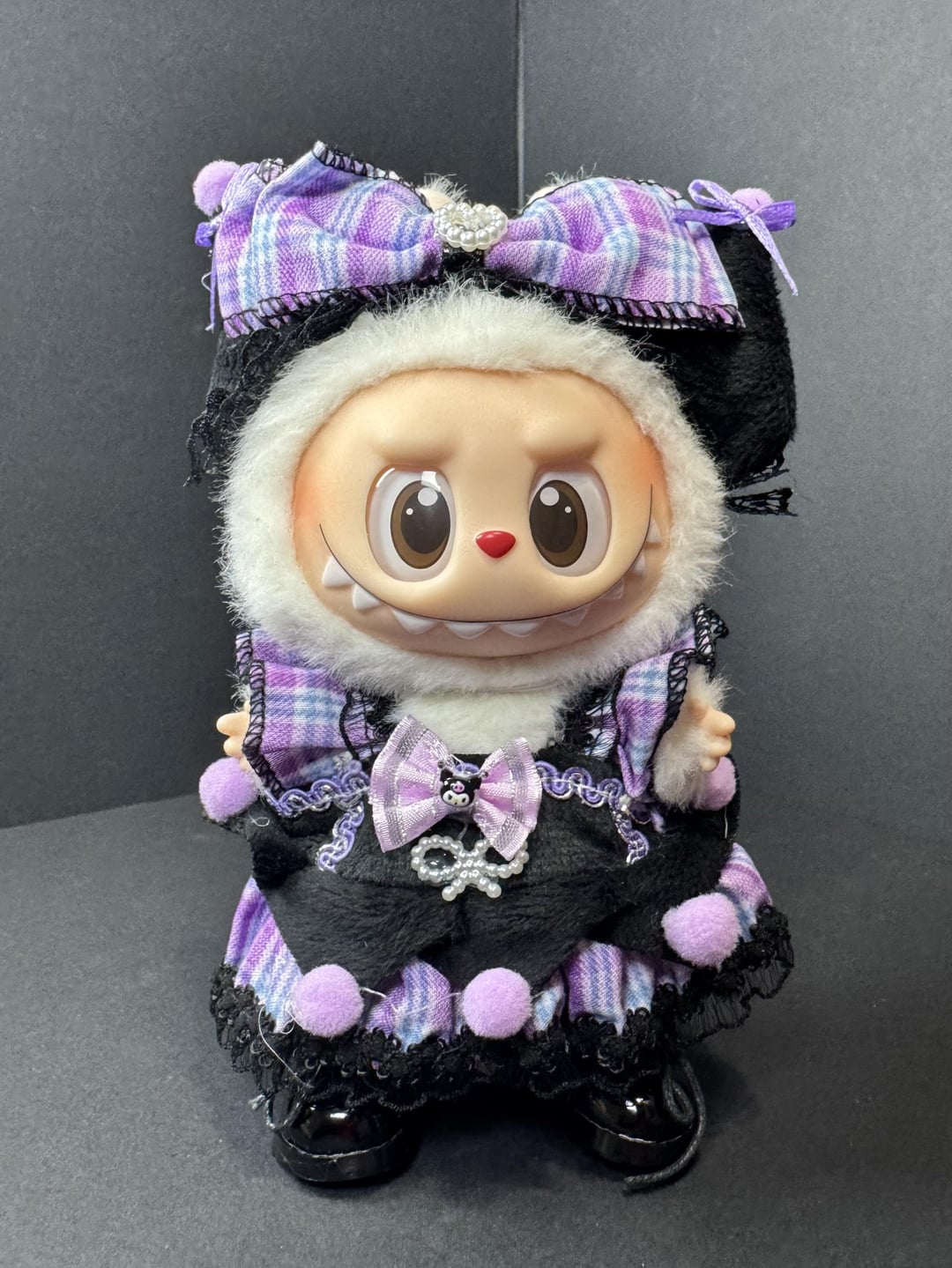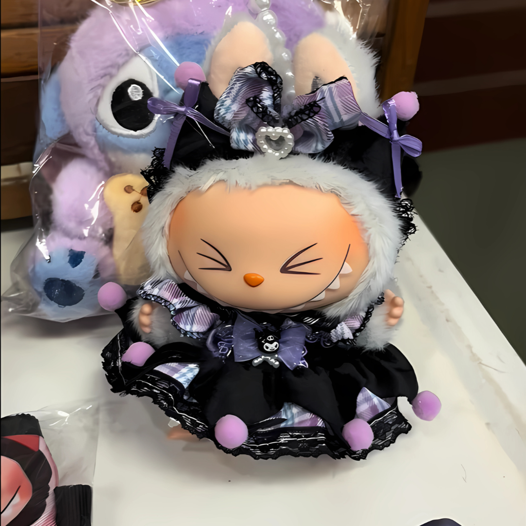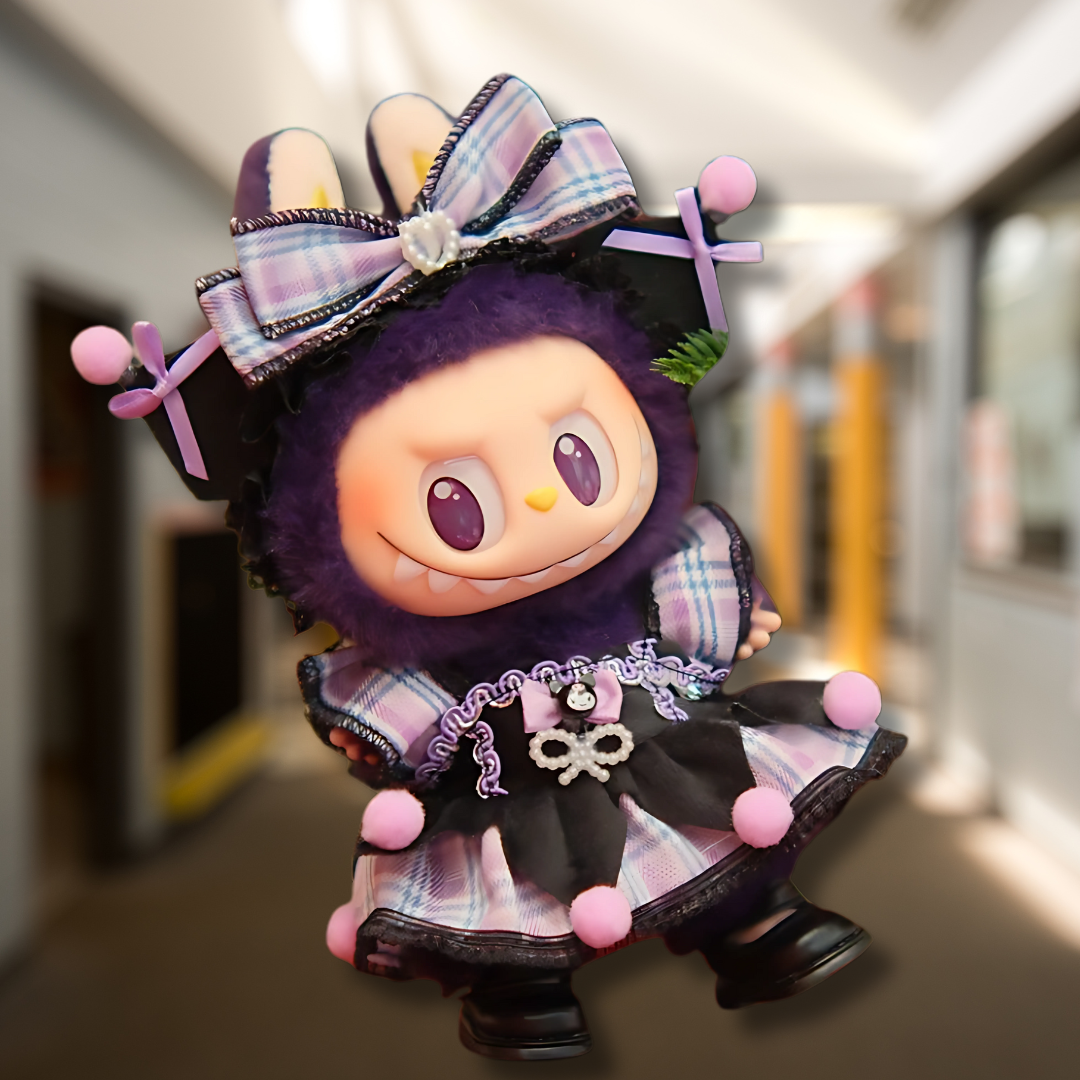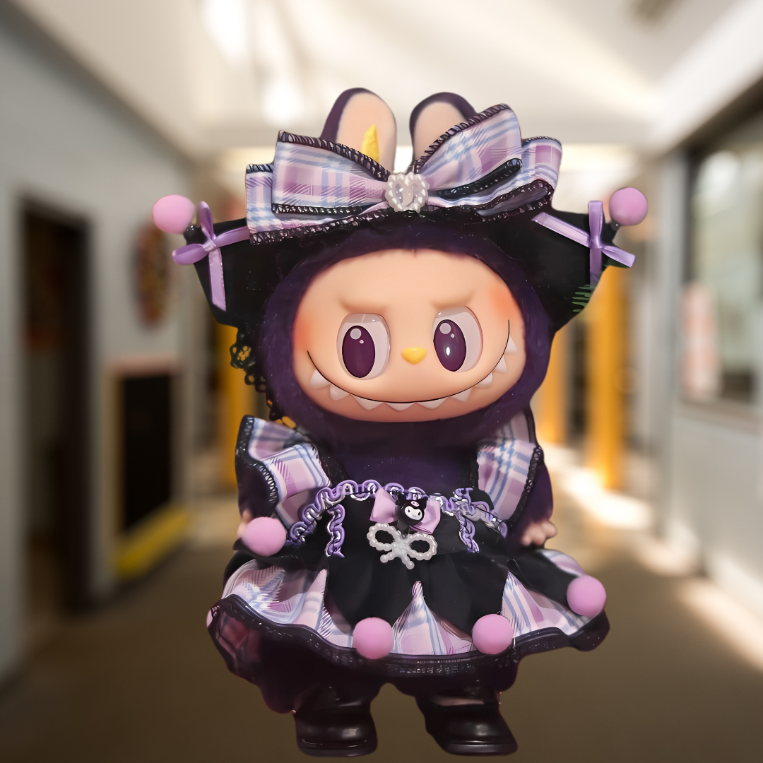 The outfit’s unique design blends street style with structured fashion, making it a standout piece for any stylish Labubu collector.